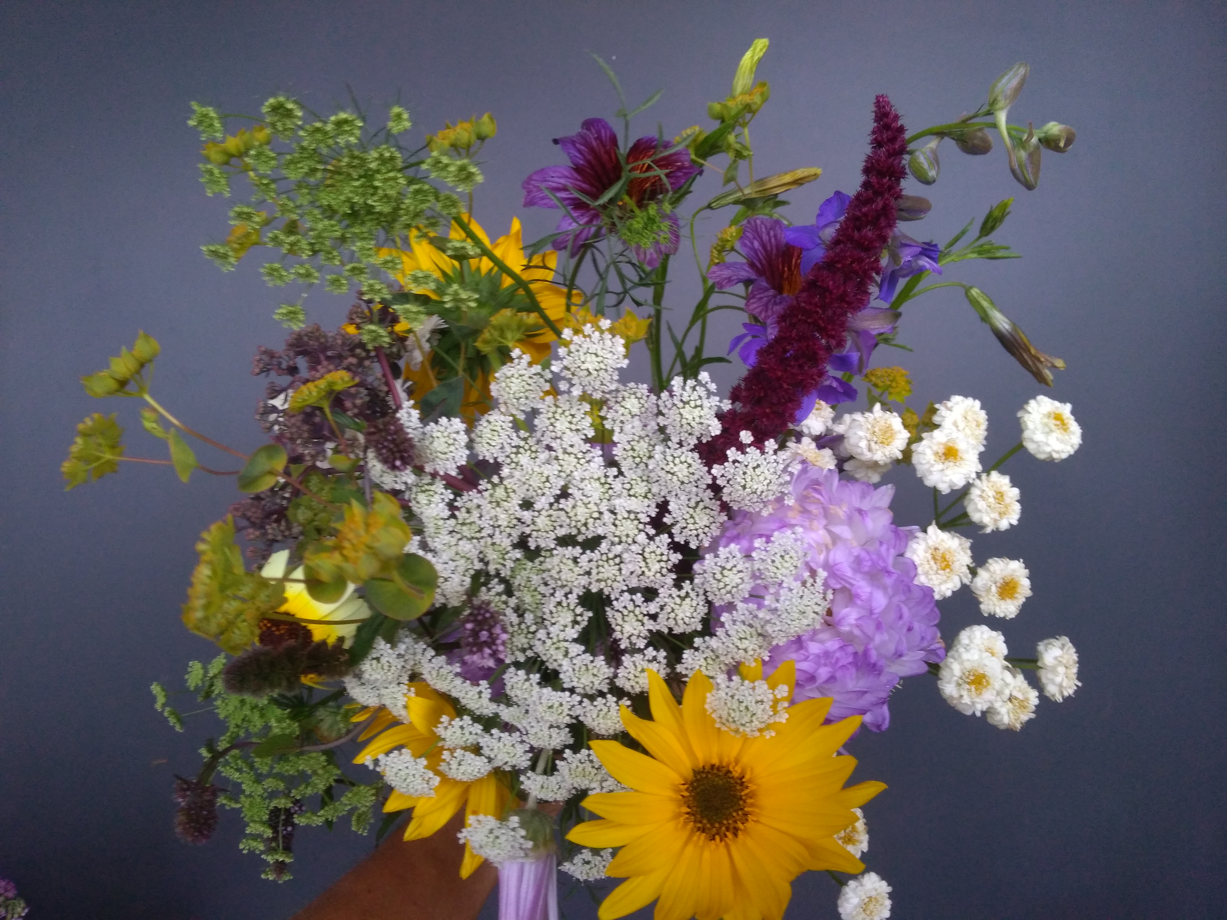 Le bouquet paysan/de la ferme est celui élaboré par la sensibilité de la paysanne, il émerge d’ une infusion d’heures passionnantes, passées au champ à préparer, semer, récolter, prendre soin de la terre et des fleurs. C’est une composition dite « champêtre », inspirée de la nature, transmettant vitalité et fraîcheur de fleurs cultivées sans pesticides.
